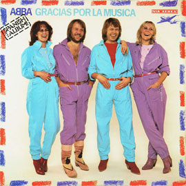 Gracias Por La Música(song numbers in brackets indicate track number on CD)Side 1: 1. (1) Gracias Por La Música (Thank You For The Music) 2. (2) Reina Danzante (Dancing Queen) 3. (3) Al Andar (Move On) 4. (4) Dame! Dame! Dame! (Gimme! Gimme! Gimme! [A Man After Midnight]) 5. (5) Fernando (Spanish Version) Side 2: 1. (6) Estoy Soñando (I Have A Dream) 2. (7) Mamma Mia (Spanish Version) 3. (8) Hasta Mañana (Spanish Version) 4. (9) Conociéndome, Conociéndote (Knowing Me, Knowing You) 5. (10) Chiquitita (Spanish Version) Released 23 June 1980.Released on CD in Japan August 1986. Released on CD in Argentina 1993. Re-released as ABBA Oro - Grandes Exitos in 1993. |