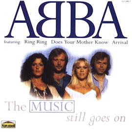 The Music Still Goes On2. Ring Ring 5. If It Wasn't For The Nights 7. Eagle 8. Dance (While The Music Still Goes On) 9. The Visitors 11. So Long 12. Bang-A Boomerang 13. Me And I 14. Move On 15. Gonna Sing You My Lovesong 16. Arrival Released 1996. Currently available.Also released as Arrival - Ring, Ring - Does Your Mother Know und 13 Weitre ABBA-Hits in Germany. Also released as ABBA Collection Series in Australia. Also released as The Danish Collection in Denmark. Also released as The ABBA Collection in Italy. Also released as Vocas Legendarias in Venezuala. Also released as I Successi in Italy 2004. |