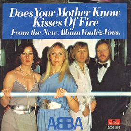 Does Your Mother Know (3.17)(Benny Andersson/Björn Ulvaeus) Lead vocal: Björn. Recording commenced 27 March 1979. Previously an early version. Includes guitar riff previously used in I Want You. Later edited for EP in Brazil. Later excerpt used in Slipping Through My Fingers and Does Your Mother Know medleys. Later prologue added for compilation LP in Japan. Later edited for compilation LP in Australia. Later recorded for the movie Mamma Mia!. A planned Spanish version remained unrecorded. First released on the LP Voulez-Vous 23 April 1979. Also released as a single A side April 1979. Also released as B side to Voulez-Vous promotional 12 inch blue vinyl single in 1979. Currently available on the CDs Voulez-Vous, ABBA Gold - Greatest Hits, Thank You For The Music, The Music Still Goes On, The Definitive Collection, The Ultimate Collection, Todo ABBA - sus grandes exitos, 30th Anniversary Original Album Box, The Complete Studio Recordings, The Albums, ABBA Gold - Complete Edition, Voulez-Vous Deluxe Edition, ABBA Collected and the DVDs The Definitive Collection, ABBA Gold - Greatest Hits, 16 Hits. |