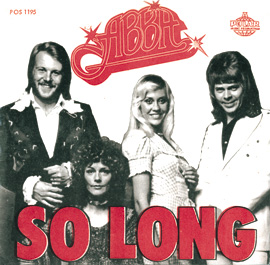 So Long (3.09)(Benny Andersson/Björn Ulvaeus) Lead vocal: Agnetha & Frida. Recording commenced 22 August 1974. Excerpt later used in ABBA-dabba doo!! Medley. First released as a single A side 18 November 1974. Also released on the LP ABBA 21 April 1975. Currently available on the CDs ABBA, Thank You For The Music, The Music Still Goes On, ABBA Master Series, Classic ABBA - The Universal Masters Collection, The Definitive Collection, ABBA Gold - Greatest Hits Sound + Vision Deluxe, The Ultimate Collection, 30th Anniversary Original Album Box, The Complete Studio Recordings, Chronicles - 3 Classic Albums, More ABBA Gold - More ABBA Hits, The Albums, ABBA Gold - Complete Edition, 2 for 1: ABBA + Arrival, ABBA Collected. |
