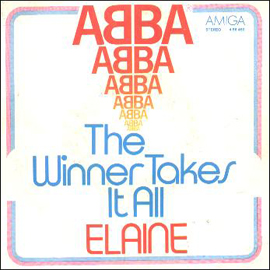 The Winner Takes It All (4.58)(Benny Andersson/Björn Ulvaeus) Lead vocal: Agnetha. Recording commenced 6 June 1980. Working title: The Story Of My Life II/III. Later edited for promotional single in USA. Later edited for EP in Brazil. Later edited for compilation LP in Japan. Later edited for compilation LP in Australia. Later edited for compilation CD in Brazil. Later edited for compilation CD in Germany. Later edited for The Last Video. Excerpt later used in ABBA Remix. Later recorded in French by Mirielle Mathieu as Bravo Tu As Gagné. Later recorded for the movie Mamma Mia!. Later performed by Faith Hill with Benny Andersson. A reported planned Spanish version as Va Todo Al Ganador remained unrecorded. First released as a single A side 21 July 1980. Also released on the LP Super Trouper 3 November 1980. Currently available on the CDs Super Trouper, ABBA Gold - Greatest Hits, Thank You For The Music, ABBA Master Series, My Love My Life (Agnetha), That's Me - The Greatest Hits (Agnetha), Classic ABBA - The Universal Masters Collection, The Best Of ABBA - The Millennium Collection, SOS - The Best Of ABBA, The Definitive Collection, The Ultimate Collection, Todo ABBA - sus grandes exitos, 30th Anniversary Original Album Box, The Best Of ABBA, 18 Hits - Svenska Popklassiker, 18 Hits, The Complete Studio Recordings, La Nostra Storia - 20 Grandi Successi, Number Ones, My Very Best (Agnetha), The Albums, ABBA Gold - Complete Edition, Icon, Super Trouper Deluxe Edition, ABBA Collected and the DVDs The Definitive Collection, ABBA Gold - Greatest Hits, The Last Video, 16 Hits, Number Ones. |