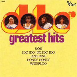 ABBA's Greatest Hits/Greatest Hits ABBASide 1: 1. SOS 2. So Long 3. Ring Ring 4. Mamma Mia 5. Nina, Pretty Ballerina 6. Waterloo 7. Waterloo (1976 reissue) Side 2: 1. I Do, I Do, I Do, I Do, I Do 4. Hasta Maņana 5. Dance (While The Music Still Goes On) 6. Honey, Honey Released France/Belgium 1975 |