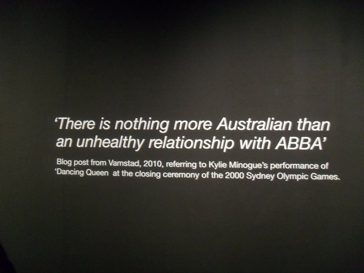 MORE ABBAWORLD: SYDNEYABBAWORLD opened at the Powerhouse Museum in my hometown of Sydney on Thursday 16 December, with a spectacular opening night concert in front of an audience of over 850 people. A huge sign spelling out ABBA in lights greeted guests as they entered the museum. The long narrow foyer was decorated with tinsel curtains down each side, with a stage at one end and giant video screens at both ends, showing ABBA videos and still pictures, as well as projecting the action on stage. The night was hosted by comedienne Julia Zimero, who hosts the Eurovision Song Contest broadcast on Australian TV and also originated the Eurovision tribute stage show Eurobeat. Three local artists performed the songs of ABBA in their own unique styles. The concert opened with Katie Noonan, singing ‘Dancing Queen’, ‘The Winner Takes It All’ and ‘Fernando’ in a jazz chanteuse style. The exhibition was then declared open with a video interview with Björn by entertainment reporter Richard Wilkins, filmed a week earlier, followed by the "Welcome to ABBAWORLD" film by Jonas Åkerlund. Guests then had a chance to view the exhibition before the rest of the evening's activities. The night progressed with an ABBA trivia quiz hosted by Zimero, dressed in a replica of Frida's 'Waterloo’ costume. Fan club member Roxanne, her friend Trudy and I competed with some simple and some tricky ABBA questions - watch the video to see the fun and find out who won! (part 1, part 2). The quiz was immediately followed by up-and-coming indie artist Andy Bull, performing ‘Waterloo’, ‘Knowing Me, Knowing You’ and ‘Mamma Mai” in a minimal style with keyboard and guitar accompaniment. The night climaxed with a full-on gender-bending rave from theatrical performer iOTA, who ended the night with rocking performances of ‘SOS’, ‘Ring Ring’ and 'So Long'. The only celebrity spotted in the crowd was Olympic diving gold medallist Matthew Mitcham. Unlike most opening night events with C-list celebrities and event sponsors soaking up free booze and canapés, tickets to the concert were available to the public, which made for a more exciting evening. ABBAWORLD has been extensively reworked for Sydney, both for space constraints and to fit in with the Powerhouse style of an immersive experience. Rather than a chronological trip through ABBA history, as it was in London, Melbourne and Györ, the exhibition is arranged in various themed areas. ABBA Performs introduces visitors to ABBA on stage and TV, with the costumes, photographs and videos of ABBA on tour. Behind the Scenes takes a look backstage at costume design, dressing room, and interviews with the crew that worked with ABBA. Australia Adores ABBA features memorabilia, newspapers and TV interviews from the ABBAmania experience in the 1970s. The ABBA Sound takes the visitor into the Polar Music Studio, and they can also try their hand at the Tretow Mixing Challenge, ABBA Sing-along, and joining the ABBA avatars on stage. Sweden Goes Pop tells the story of ABBA's rise from the 60s, and here we meet the members of ABBA and manager Stig Anderson in interviews and television performances. Also here visitors are transported to Björn and Benny's songwriting cottage on the island of Viggsö. Finally The ABBA Legacy looks at the members after ABBA, the ABBA revival, Mamma Mia! and The Last Video, and ABBA's influence on contemporary pop. Another different feature of ABBAWORLD Sydney is having ABBA fans working as volunteers, to help guests, answer questions or just to talk with visitors about ABBA. ABBAWORLD has been a huge success in Sydney, with over 700 visitors per day in the weeks after Christmas. There is a blog post quoted on the wall "There is nothing more Australian than an unhealthy relationship with ABBA." Perhaps that's true, but we love it! The Official International ABBA Fan Club Magazine # 106 March 2011 |