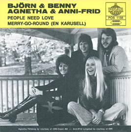 | Merry-Go-Round (En karusell) (3.27) (Benny Andersson/Björn Ulvaeus) Lead vocal: Björn. Recording commenced 29 March 1972. Also known as Merry-Go-Round. Later remixed for Japanese single release as En Carousel. Later recorded in Swedish as En karusell. First released as B side to People Need Love in 1972, credited on the label to Björn & Benny. Currently available on the remastered CD Ring Ring and the 4 CD box set Thank You For The Music. |
